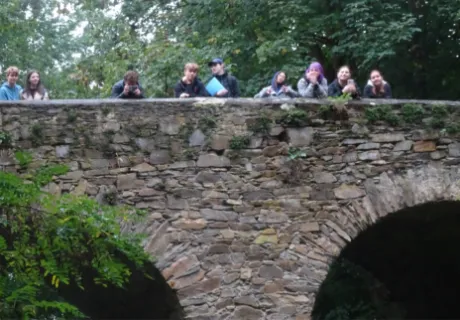 Druhý den, 1. října, výuka pokračovala návštěvou několika z geologického hlediska zajímavých míst v kolínském okrese. Viděli jsme obrovské žulové bloky na Klepci, rulový Lechův kámen u Kouřimi a alespoň z dálky unikátní stébelnatou rulu u Doubravčan. V Toušicích jsme se prošli po kamenném barokním mostě z druhé poloviny 17. století, a kdo se nebál slézt po kluzké krkolomné cestičce, mohl si zblízka prohlédnout i rulové Toušické prahy, přes které se v kaskádách žene voda Vavřineckého potoka. První a poslední zastávka v tomto dni byla věnovaná pozůstatkům křídového moře na Skalce u Velimi a u Červených Peček.