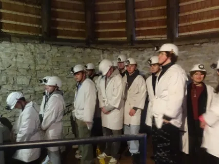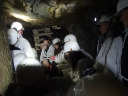 Po prozkoumání lomu jsme se přesunuli na Hrádek, kde jsme absolvovali „Cestu stříbra“. Během prohlídky jsme se dozvěděli, jak se kdysi těžilo a zpracovávalo stříbro a také jak se razily mince. Největší zážitek ale přišel, když jsme se oblékli do hornických halen s kápí, nasadili si přilby se svítilnami a vydali se do podzemí bývalého stříbrného dolu. Asi 250 m dlouhá trasa vedla úzkými chodbami, které nám ukázaly, v jakých podmínkách dříve havíři pracovali.