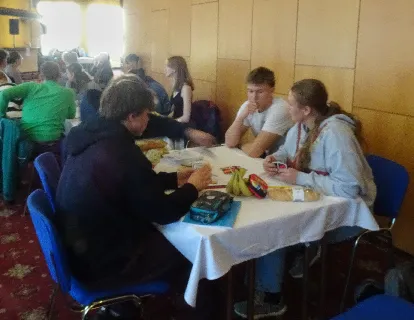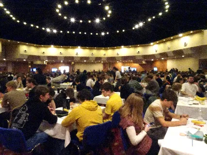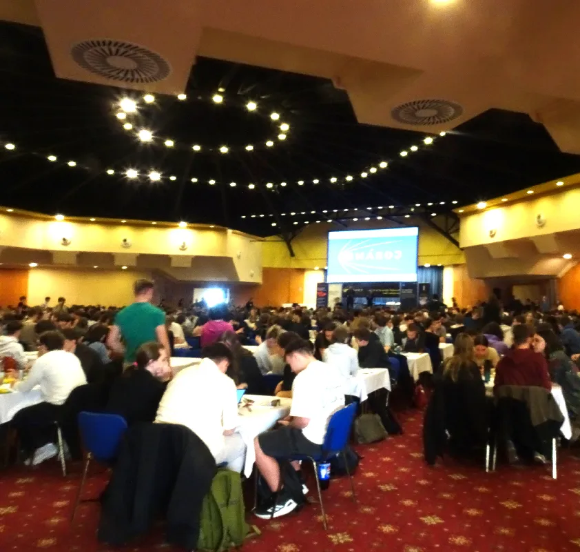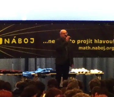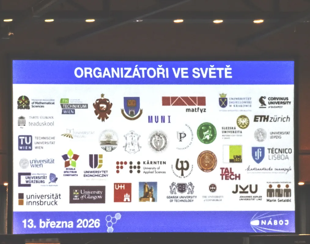 V pátek 13. března se konala mezinárodní matematická soutěž Náboj, odehrála se současně na 52 místech v 16 zemích za účasti více než 10 000 studentů ve dvou věkových kategoriích. Naším soutěžním místem byly krásné reprezentační prostory TOP Hotelu Praha na Chodově. Prvním náročným úkolem, který museli studenti zvládnout hned po registraci, bylo nalezení svého místa mezi víc než stovkou očíslovaných stolů ve velkém sále i přilehlých chodbách. Naštěstí každý tým dostal do ruky plánek, tak se ani moc nebloudilo. Na každém stole už soutěžící čekala bohatá svačina a drobné odměny pro každého.