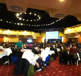 Účastnily se týmy z celé republiky a trvalo poměrně dlouho, než se všechny sešly. Nikde ale nebyla znát žádná nervozita, všude vládla dobrá nálada. Čekající studenti si krátili čas hraním společenských her nebo třeba skládáním vlaštovek, které pak létaly celým sálem. V 11 hodin soutěž konečně začala. Během krátkého zahájení přišli studenty pozdravit zástupci sponzorů a také dlouholetý garant soutěže v ČR doc. RNDr. Mirko Rokyta, CSc, současný děkan Matematickofyzikální fakulty UK. Pan děkan projevil radost nad velkým počtem zájemců o matematiku, poděkoval studentům za účast a připomněl, že tak vlastně všichni společně o den dříve slavíme světový den čísla pí (14. 3. – 3,14). Pak už jen popřál soutěžícím hodně úspěchů a soutěž mohla začít. Pro jejich doprovod byl zatím v sousedním salonku připravený zajímavý program i s občerstvením.