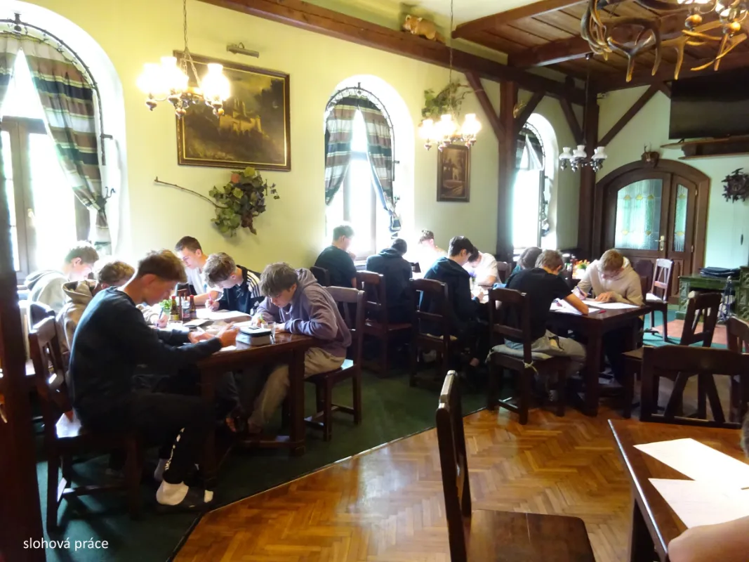 Hezký, upravený areál, milý personál, palačinky; prostorné chatky, sice pár věcí nefungovalo, ale sranda byla stejně; večeře, večeře, večeře; palačinky; koprovka; párek v rohlíku k snídani, zpívání s kytarou a přátelská atmosféra u táboráku; příjemné prostředí a rychlá obsluha; opékání na ohništi bylo fakt super; táborák s rodinnou atmosférou a pozorování hvězd; písničky na kytaru byly vážně skvělý; táborák; dobré jídlo, zábava, večeře s panem učitelem, panoramatické výhledy; kamarádi, kolektiv, zábava; večeře s panem učitelem, vtip; táborák ve čtvrtek, ŠVP i s nohou v sádře, sci-fi divadlo, noční bojovka; malebná krajina, dlouhé procházky, slohová práce, divadlo, táborák a spousta dalších zážitků; nádherný zámek, táborák, divadlo; byla to zábava, super divadlo, haha; „Zrcadlo, zrcadlo, kdo je na světě nejkrásnější?“; super výlety a výhledy; šance socializovat se a objevit nové krásy přírody; vděčnost za čas, který jsme mohli strávit spolu; asi nejlepší škola v přírodě, krásné počasí, hodně zpívání a hlavně fajn kolektiv; náročné, ale zábavné; skvělé zakončení školního roku. (Kvarta 24/25)