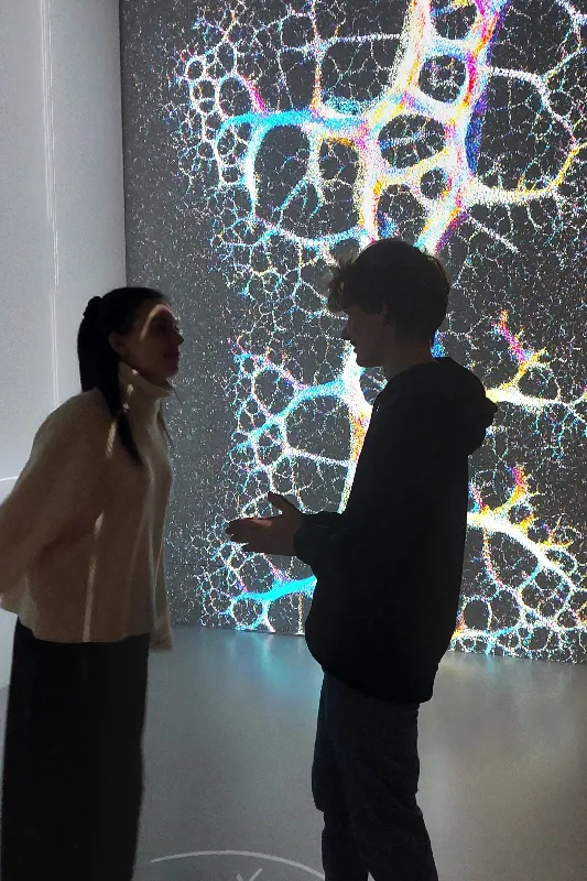 První výstava, která nese název Echoes of Tomorrow, tedy Ozvěny zítřka, přestavuje české i zahraniční tvůrce. Ti pomocí dat, kódů, světla a algoritmů otevírají aktuální témata – od umělé inteligence po klimatickou krizi – zároveň oslovují diváky silným vizuálním i emocionálním zážitkem s důrazem na interaktivitu.
