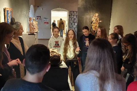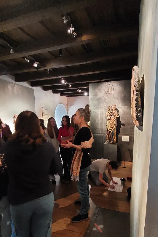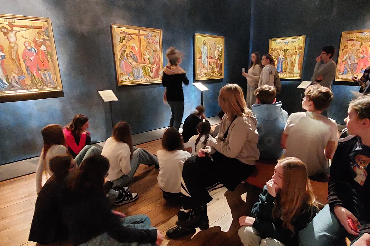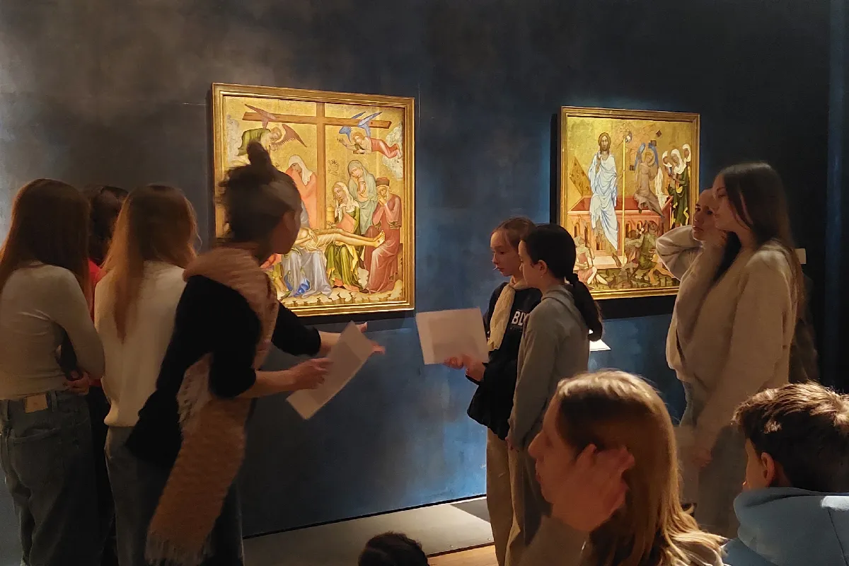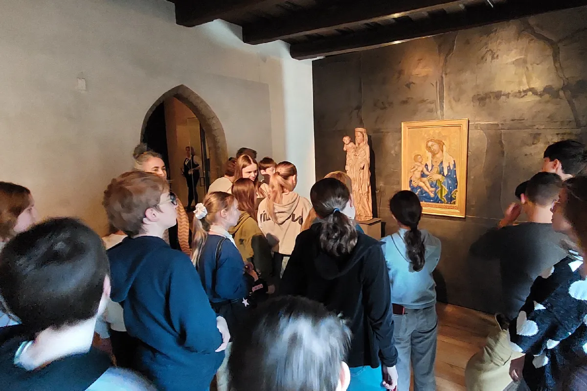 V první části návštěvy studenti absolvovali vzdělávací program Tajemství gotiky, pomocí něhož se pokusili porozumět středověkým dílům a jejich symbolice. Zároveň se poutavou interaktivní formou seznámili s nejznámějšími díly sbírky.