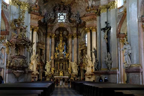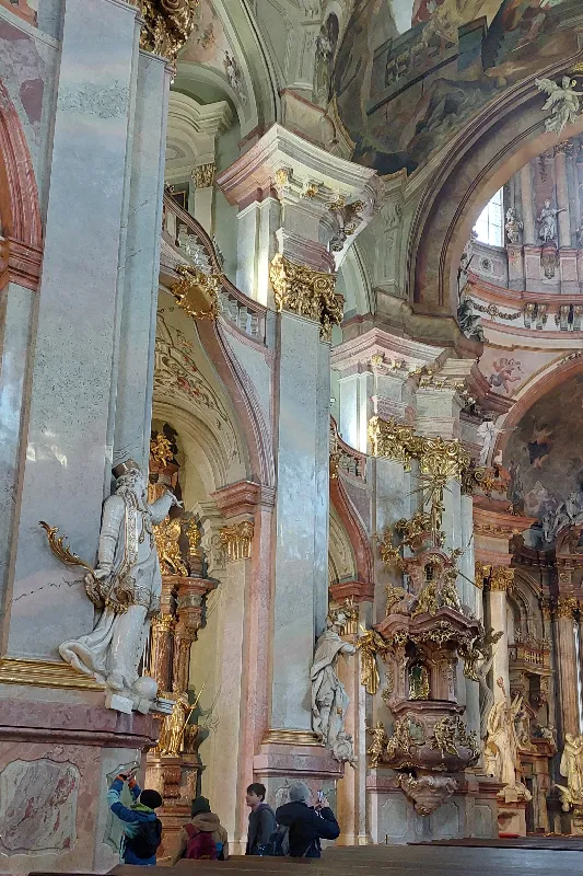 Nejdříve jsme navštívili jedinečný chrám sv. Mikuláše na Malé Straně, barokní skvost, na jehož vzniku se podíleli především otec a syn Dietzenhoferovi. Úchvatný byl již pohled na kostel zvenku, na fasádu rozvlněnou nepravidelnými křivkami a kopuli tyčící se do výšky 79 metrů. A co teprve interiér! Nádherná štuková výzdoba, obrazy, fresky.