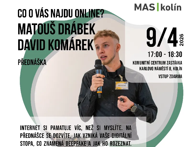 Přijďte na zajímavou a praktickou přednášku, kde se podíváme na to, jak vzniká vaše digitální stopa a proč ji není radno podceňovat. Cenné rady se dozvíme přímo od mladé generace!